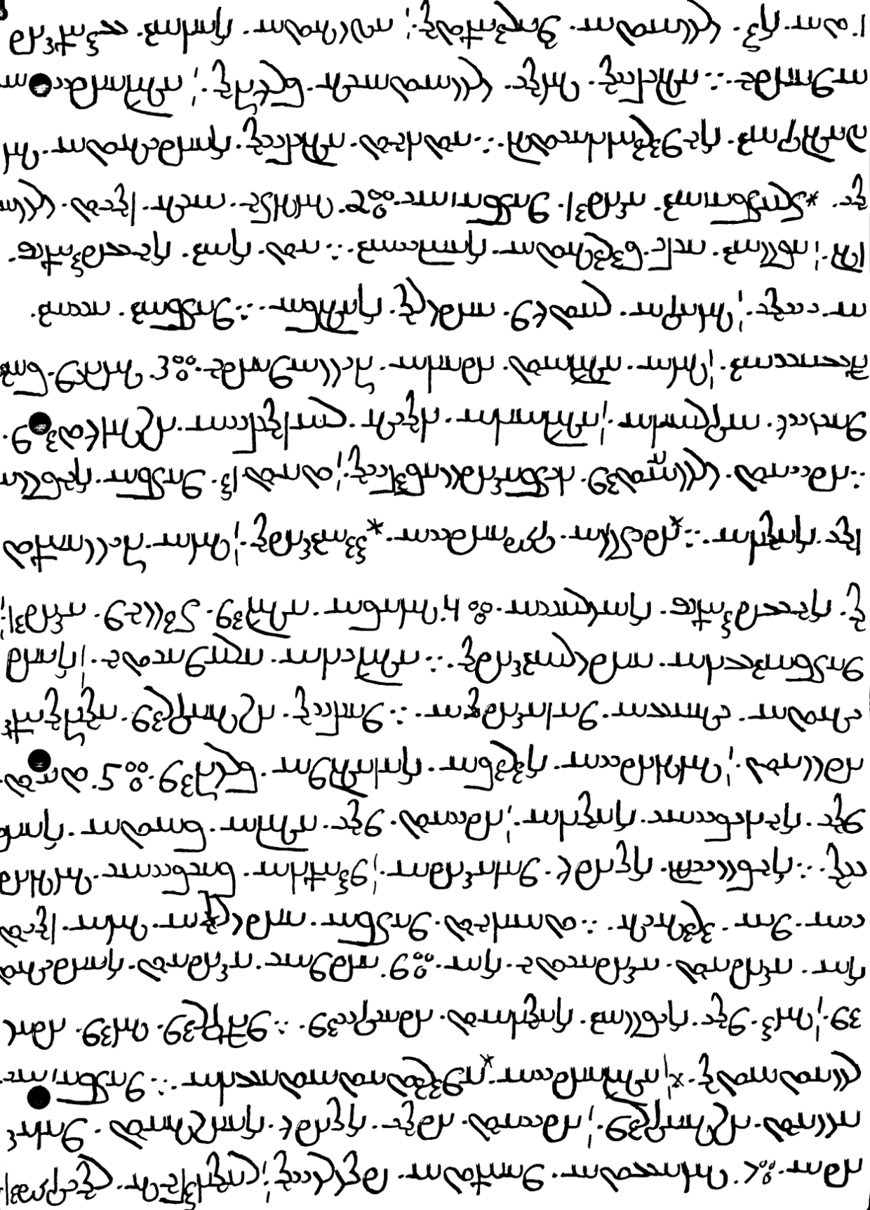 To this effect, when properly written, the graphology of the script displays the recurrent shape a running through the center of the line, with variances extending above and below in many letters, thus representing the way in which the priests may have sung or recited Avestan, with high and low notes accentuating a sacred tone carried throughout. Although, I do admit such a notion is hypothetical.